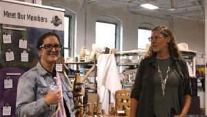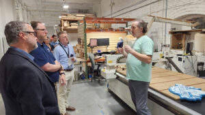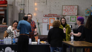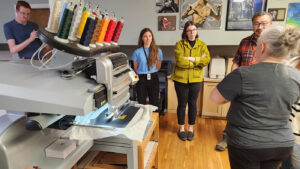 Throughout the evening, attendees explored the many workshops and studios that make Lowell Makes a hub of creativity and innovation. From seeing projects come to life on the 3D printer to discovering how CNC routing and embroidery can support small-scale production, business owners and artisans alike found inspiration in every corner of the space.