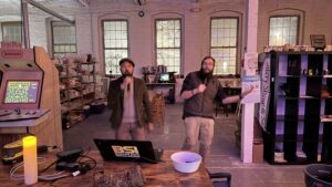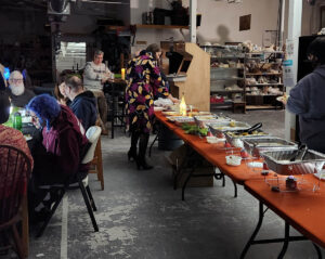 Since we could no longer safely hold the event at Taffeta, we packed up the food and décor and quickly pivoted. The dinner was moving to Lowell Makes. Calls went out: Bring battery-powered lights. Bring what you have. We’re doing this.